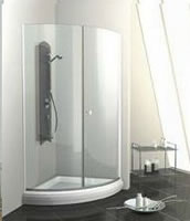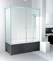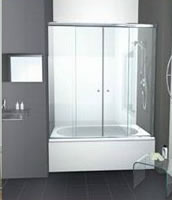 Fabricación y colocación de mamparas fijas y rebatibles marca Glassic, con perfileria de aluminio en distintos acabados de 6 mm y 8 mm incoloro, color y satinado.